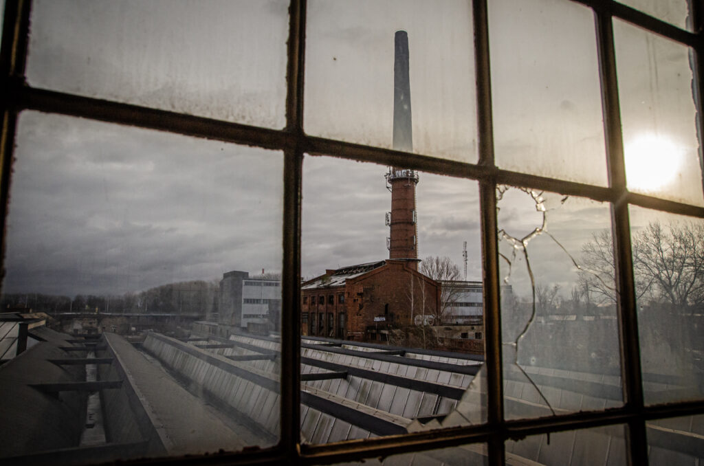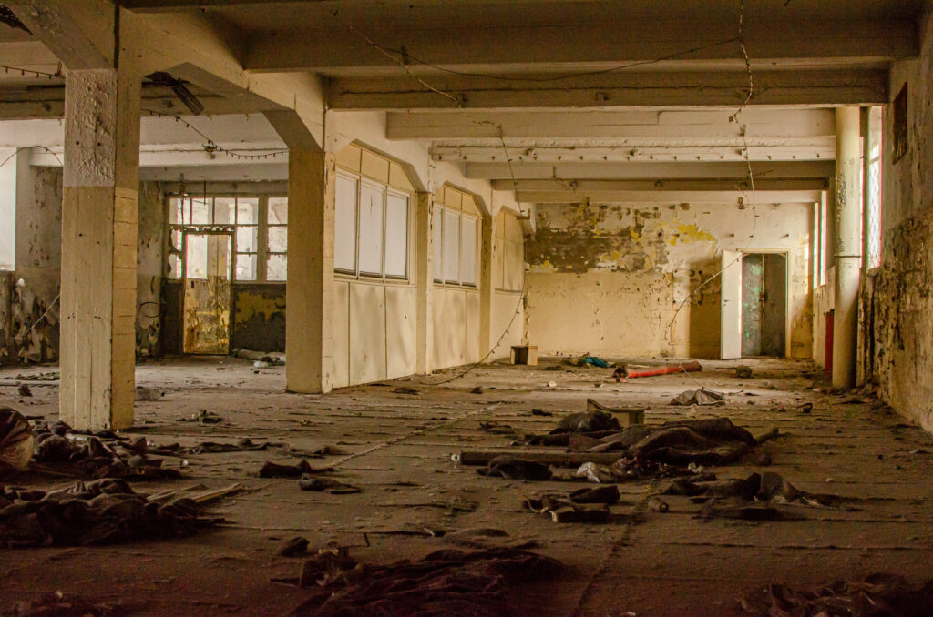 Prawdopodobnie w tych halach spali więźniowie przed wybudowaniem części obozowej z barakami. Fot. M. Bocian